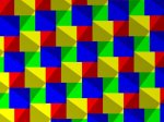 Various renderings of a Pythagorean tiling. Mostly using the 3,4,5 triangle. This tiling has been called a “wordless proof” of Pythagoras’ Theorem. It shows by dissection that the area of the “shadow” square on the hypotenuse is equal to the sum of the areas of the squares on the two other sides. IMHO, it’s not quite a wordless proof, since you still have to prove that the large squares are really squares & not just rhombuses.