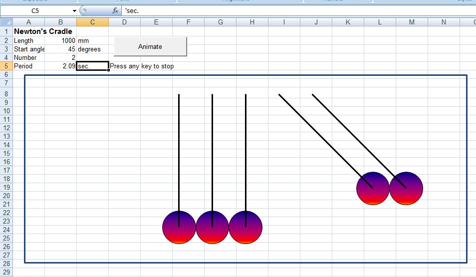 Maybe I’ll get around to putting in some collision losses one day, but to do it properly it would mean that after the collision all the balls would have some velocity, so the next collision would not occur exactly at the low point, so I’d have to keep track of the position and velocity of every ball, and check for collisions of every pair of adjacent balls at evey step.