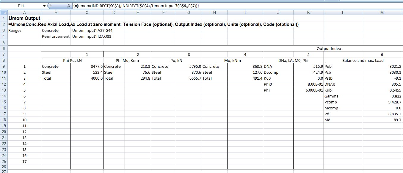 The file ULS Design Functions.zip contains User Defined Functions (UDF’s) that will find the ultimate bending capacity of any reinforced or prestressed concrete section (defined by rectangular or trapezoidal layers) with any number of layers of reinforcement, when subject to a specified axial load. As for the elastic design functions, the analysis uses a closed form solution, rather than an iterative procedure. The current version follows the Australian Standards AS 3600 or AS 5100. Other codes will be added to future versions. Details of the procedure will be given in later posts.