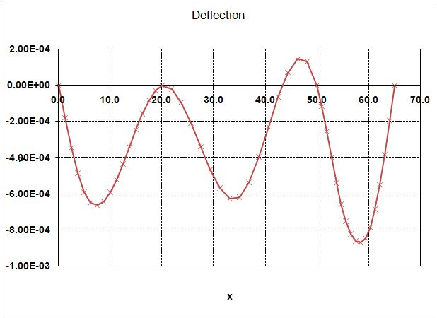 The last example in the previous post illustrated the use of cubic splines to find the bending moments in a continuous beam subject to prescribed lateral displacements. A similar technique can be used to find bending moments, shear forces, reactions, and displacements in a continuous beam subject to lateral forces. The spreadsheet SplineBeam.zip contains a description of this technique and a User Defined Function (UDF) to perform the analysis.