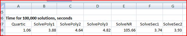 The example used is the evaluation of a quartic polynomial, for which exact analytical solutions are available, but the functions in the spreadsheet may be used directly for polynomials of any degree, and may be easily adapted for other forms of equation. The spreadsheet also includes User Defined Functions (UDFs) to solve Quartic, Cubic and Quadratic equations.