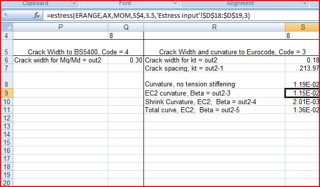 The Estress output provides an estimate of the section curvature allowing for tension stiffening to the EC2 provisions, along with crack widths.