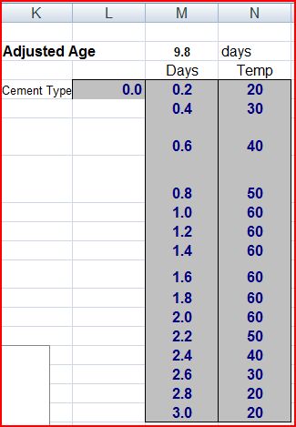 The temperature input in the spreadsheet relates to the maturity of the concrete at the age of first loading, and this comes straight from EC2.