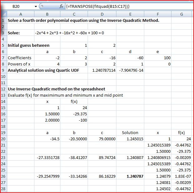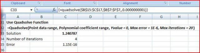 The process is automated using the UDF QuadSolve():