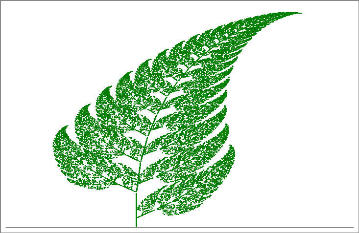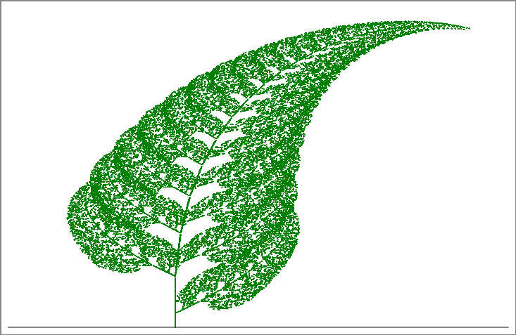 Over at Daily-Dose-of-Excel mrt has posted an interesting VBA version of a Matlab program that used an Iterated Transfer Function to plot a graph resembling a fern.  The original Matlab code came from Dr Tom Wood, and Michael’s VBA version works just fine, but I took the liberty of making a few changes to suit my own tastes: