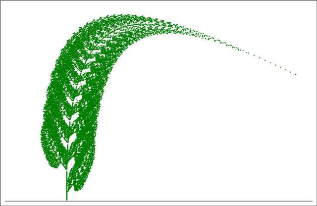 The resulting spreadsheet, including full open source code, can be downloaded from Fern Chart.zip.  Note that I have changed the number of points to 1000 to keep the file size down.  Around 30,000 points will work with pre 2007 Excel, and also gives the most pleasing results.