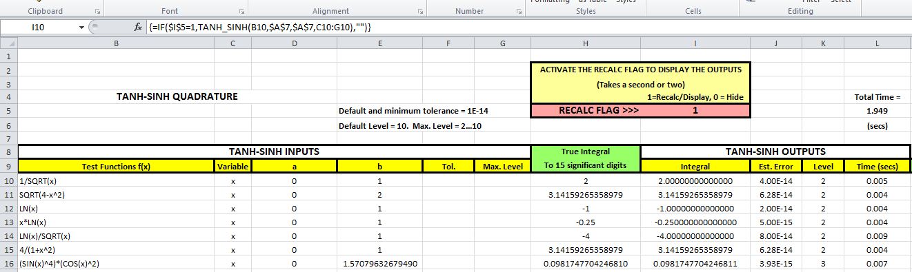 The spreadsheet (including full open source code and extensive notes) may be downloaded from: Tanh-Sinh.zip.