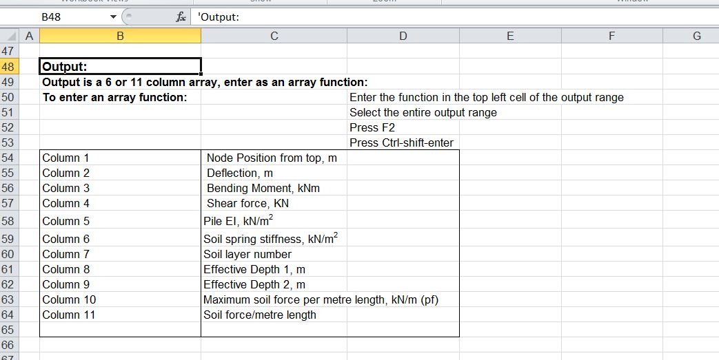 The other major change is that additional columns may (optionally) be added to the output array, providing details of the calculated effective depths, ultimate soil resistance, and calculated soil force/unit length of pile.