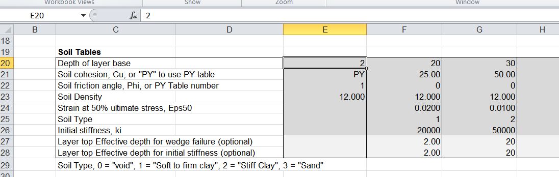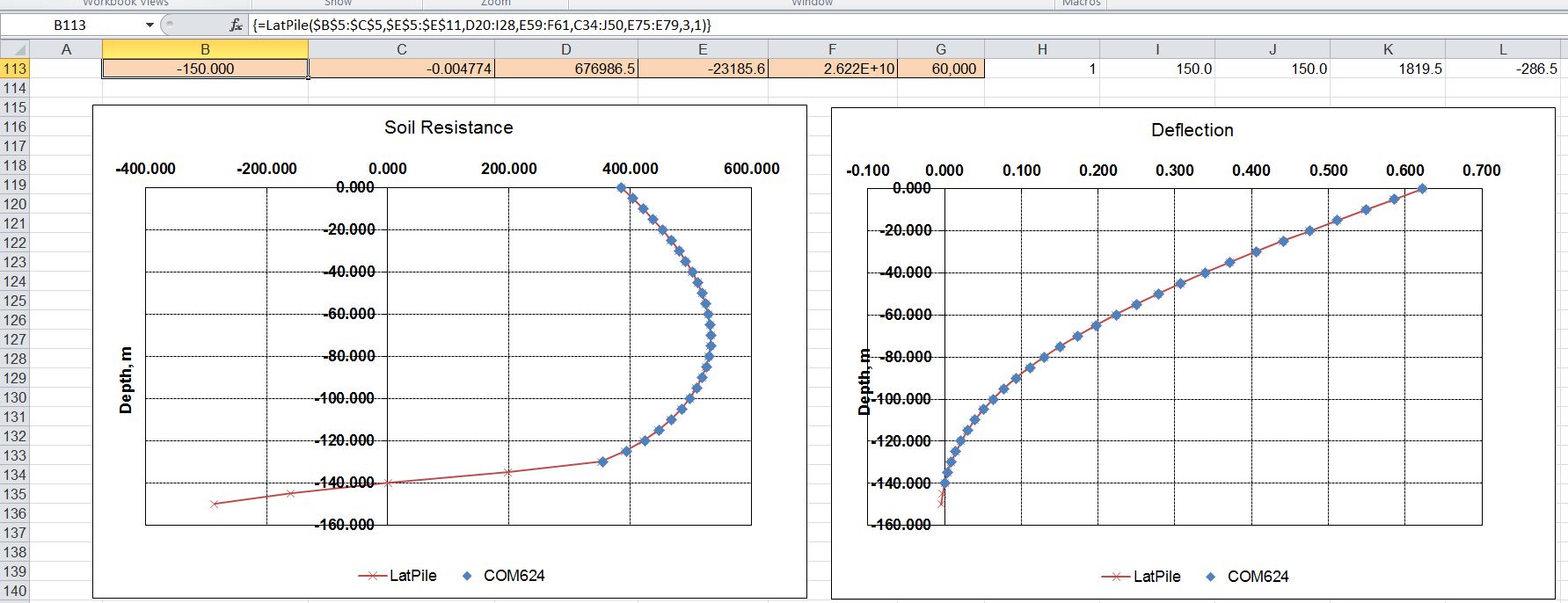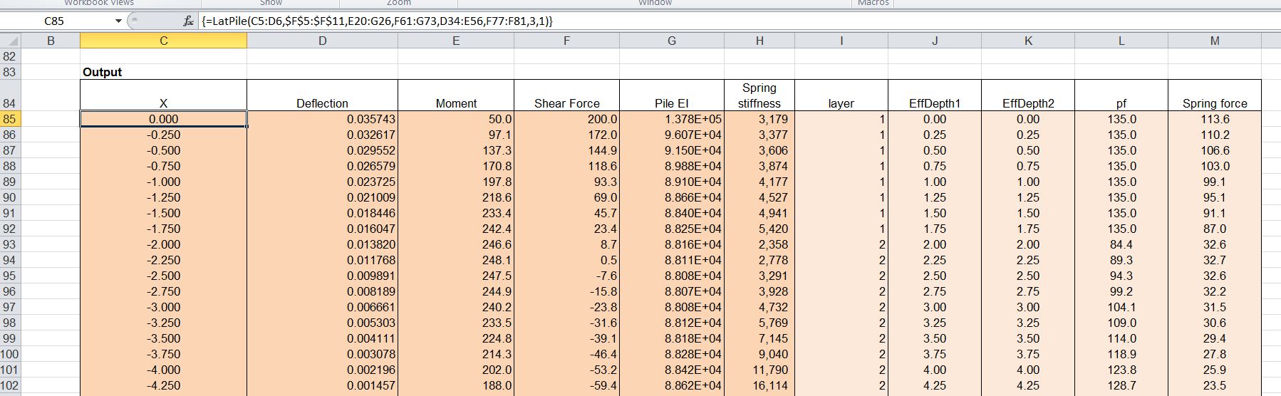 Following some discussion at Eng-Tips and elsewhere I have updated the LatPilePY spreadsheet, previously presented at Lateral pile analysis with PY curves … This spreadsheet provides User Defined Functions (UDFs) to carry out the analysis of vertical piles under lateral loading, following the method described in the manual for the program COM624. See the earlier posts for more details. The new spreadsheet, including full open source code, can be downloaded from LatPilePY.zip .
