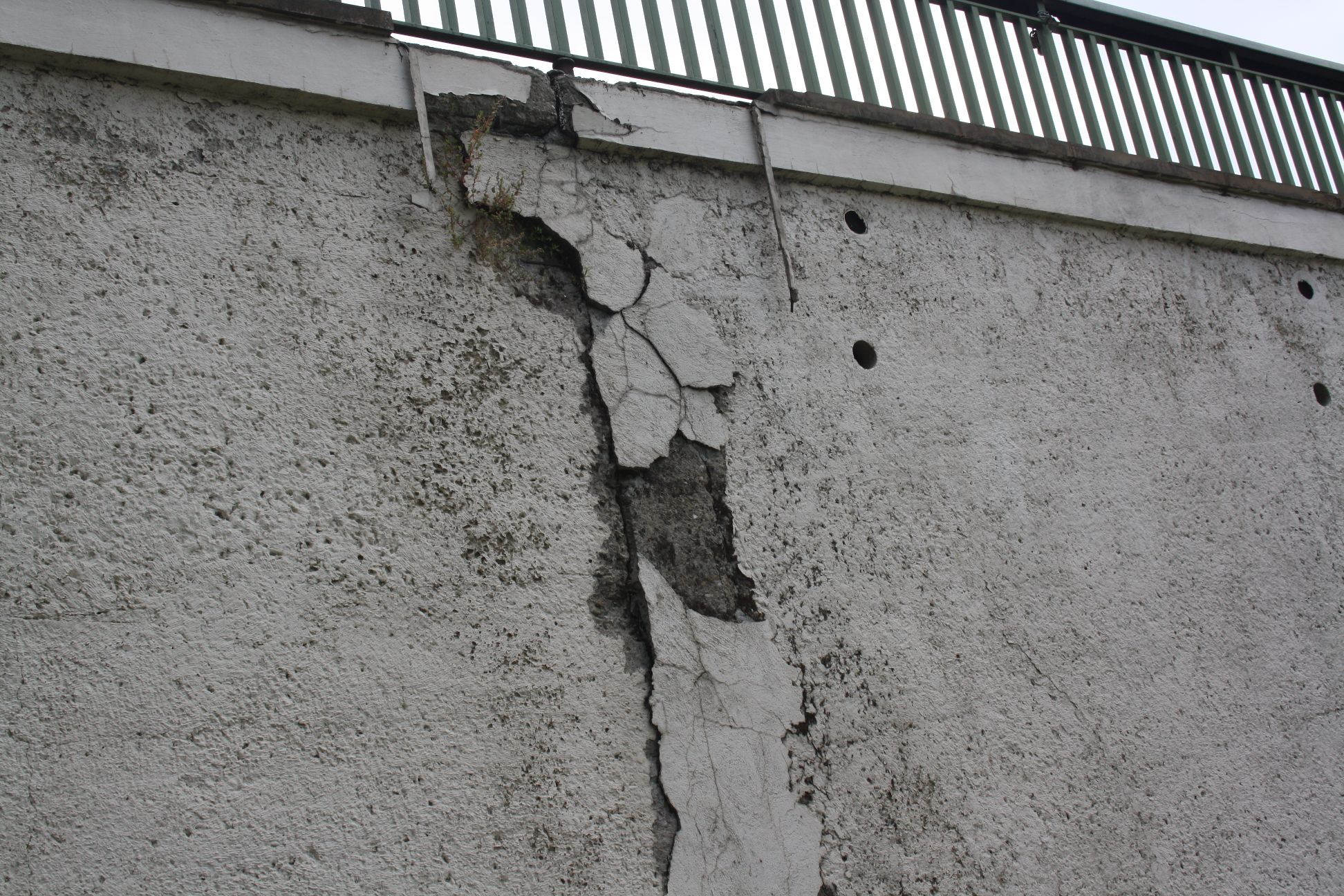 The structure has wide vertical cracks in the spandrel walls at both abutments, possibly due to thermal movements: