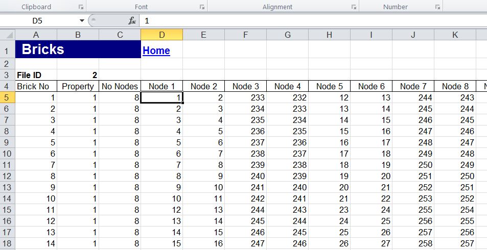 - Transfer the node and brick data into a finite element program (Strand 7), forming a model of one segment of the dome. This was done using the Strand7 Applications Programming Interface (API), and the spreadsheet S7 API Tools, which allows Strand7 models to be generated automatically from spreadsheet data.