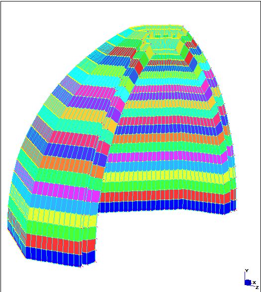 - Trim the ends of the end segments, leaving a half dome with a vertical plane cut face, and assign symmetry restraint conditions to this face.