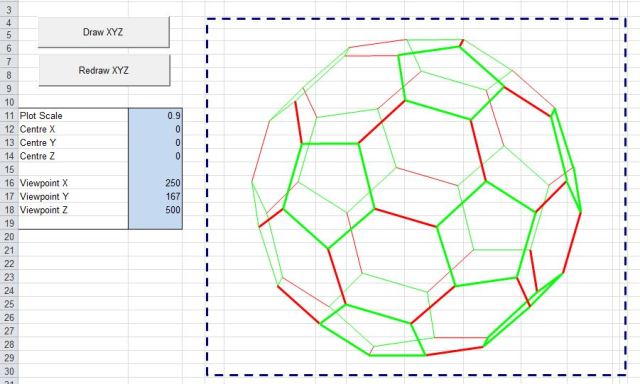 This was used to plot a Buckyball in: Drawing a Buckyball in Excel , with download file:
