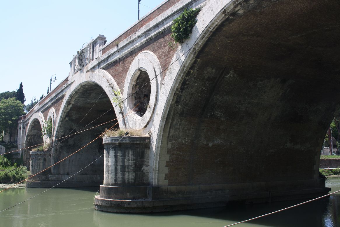 The final two bridges are the Ponte Risorgimento (17) and the Ponte Pietro Nenni (15). The Ponte Risorgimento has many visual similarities to flat segmental arches of the late 19th Century, but it is an early example of the use of reinforced concrete, having been constructed using the system of François Hennebique, starting in 1909. The designers have taken advantage of the reinforced concrete system with a larger span and more slender crown than could be achieved with masonry construction.