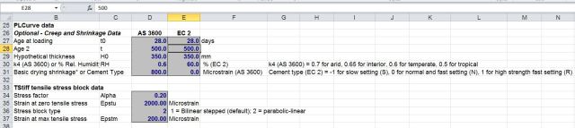 PLCurve either requires creep and shrinkage data (to AS 3600 or Eurocode 2) to be input, or the fictitious prestress may be input directly.