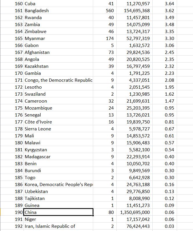 mainland China comes in at 190th out of 192, with only 80 views from close to 20% of the World’s population.