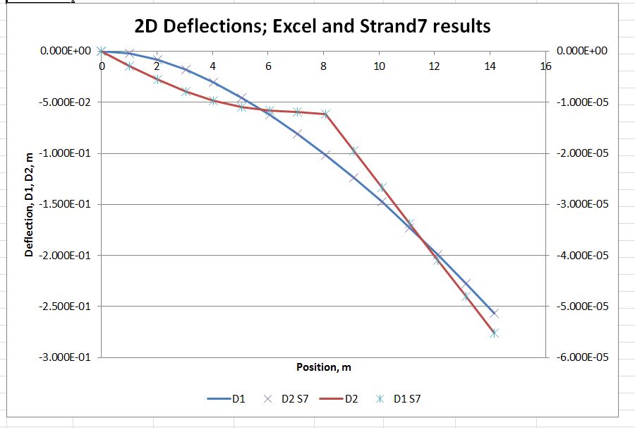 The new functions, BeamAct3D and BeamAct2D calculate forces, moments, deflections and rotations along a 3D or 2D beam under specified end conditions and loading. The output is calculated based on the conditions specified at End1, and optionally the error in the calculated values at End 2, compared with the input values, may be returned. If this option is not used the End2 data is ignored.