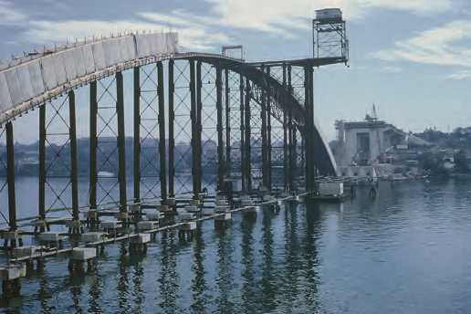 The selection of photographs below are taken from a recently published article by Rob Wheen, who as a young man was a keen observer of the bridge construction. The full article is freely available for download from: Gladesville Bridge Article, and members of The Concrete Institute of Australia may view the full issue (and previous magazines back to 2008) at Concrete in Australia.