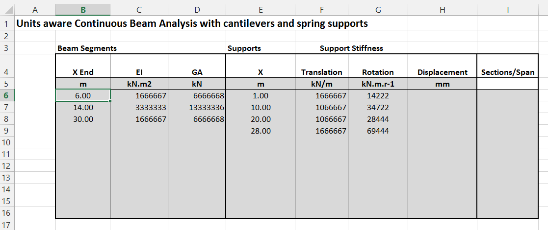 As promised in a recent post, I have updated the ConBeamU spreadsheet to allow defined deflections to be specified at any support.