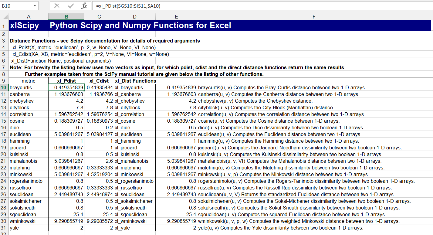 The xlSciPy spreadsheet, introduced here, has been updated with many new functions. The new version, including full open source code (VBA and Python) can be downloaded from:
