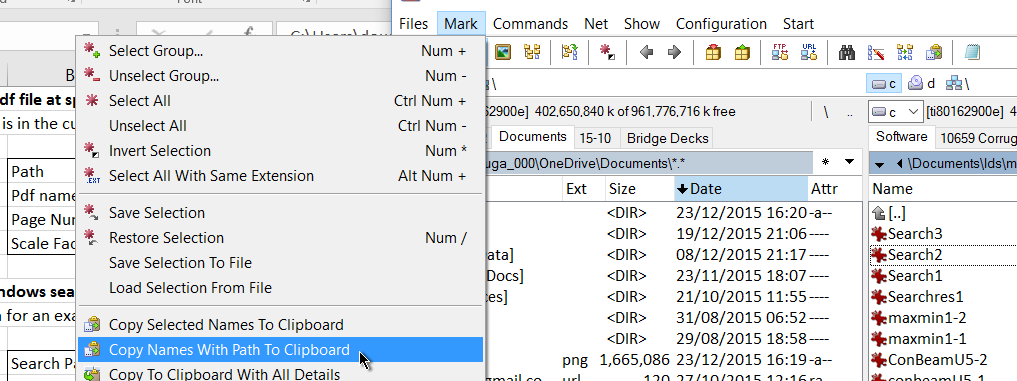 Both the View pdf and Search macros require the full path to be entered, or will work on the current path if the path entry is left blank.  My favoured method to copy the full directory path is using the Total Commander file management package.  Select the directory you want to copy, then Mark – Copy Name With Path to Clipboard: