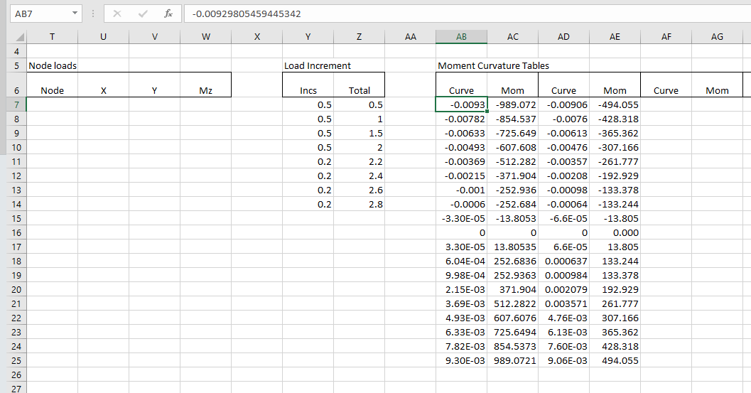 If “Use MonCurve” is activated a moment-curvature table must be entered for each material type. In the current version the moment-curvature tables are applied in sequence (from left to right) to each material type.