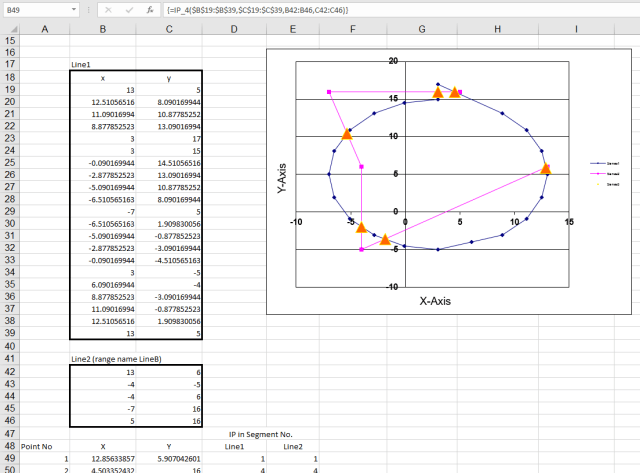 IP() and IP_4 find the intersection points of 2 lines or polylines: