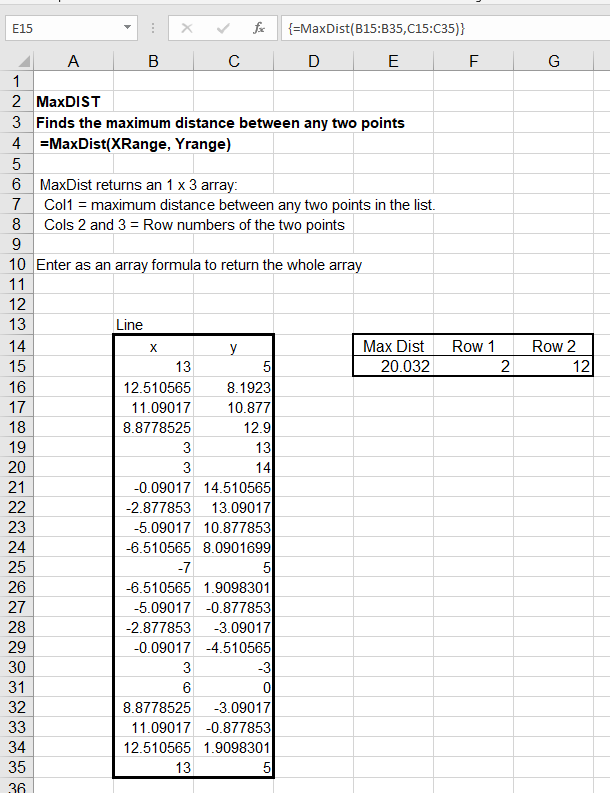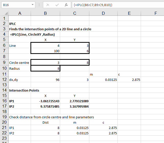 The Circle Functions sheet contains functions to find the intersection points or lines, circles and spheres, and the 3D centre of circles or arcs: