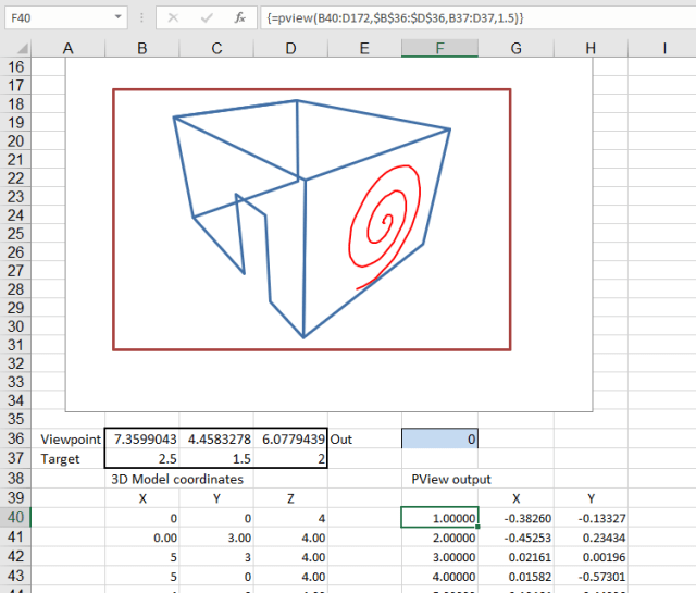 The PView function returns a perspective projection of coordinates viewed from a specified angle and distance.