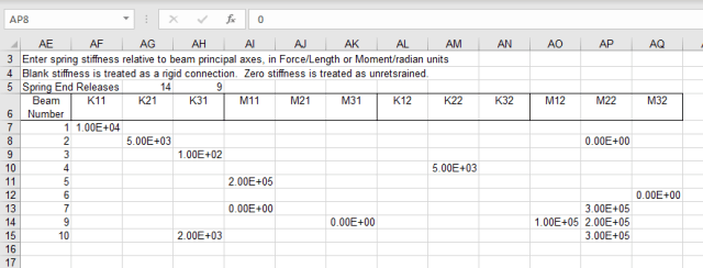 Typical input showing both spring and zero stiffness releases is shown in the screen shot below: