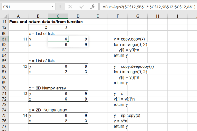 - An array, x, is read from the spreadsheet and passed to a subroutine, either as a list, a list of lists, or a 1D or 2D Numpy array.