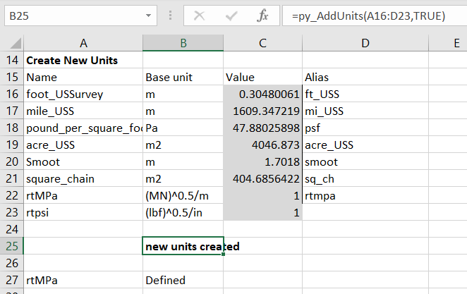 py_AddUnits adds units to the Pint Unit Registry, and py_UnitDefined checks if a unit yet exists: