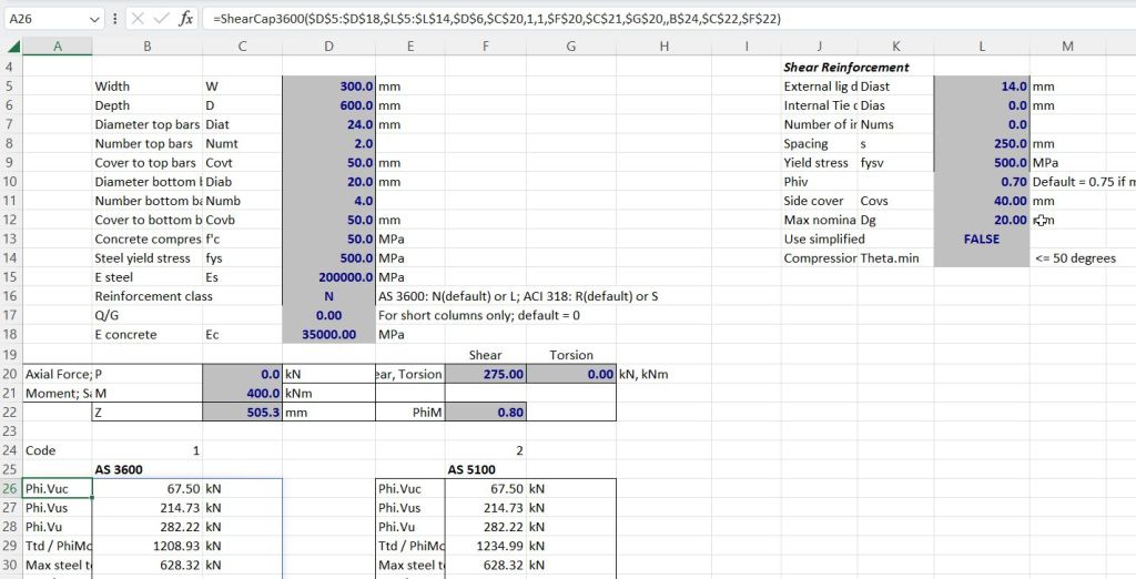 ShearCap3600: Shear capacity to current AS 3600 and 5100.5: