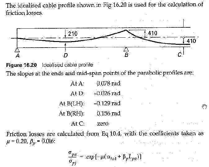 f: As c: except prestress applied with friction losses to AS 3600 - 3: Include prestress cable, apply loads to the end of the cable. Cable modelled as beam elements, connected with friction contact elements.