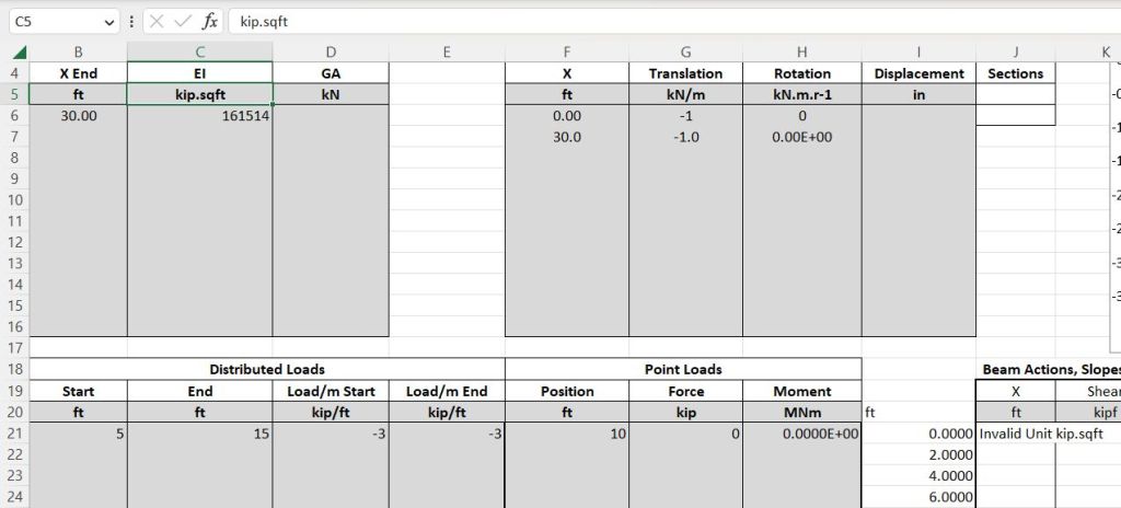 - Flexural stiffness (EI) may be entered as kipf.ft2, kip.ft2 or kip ft2