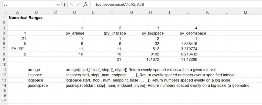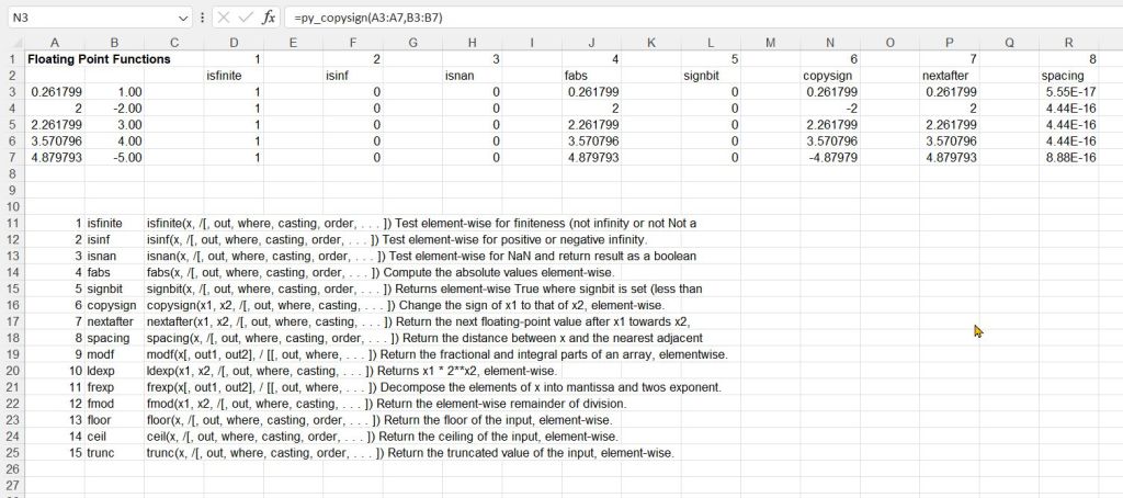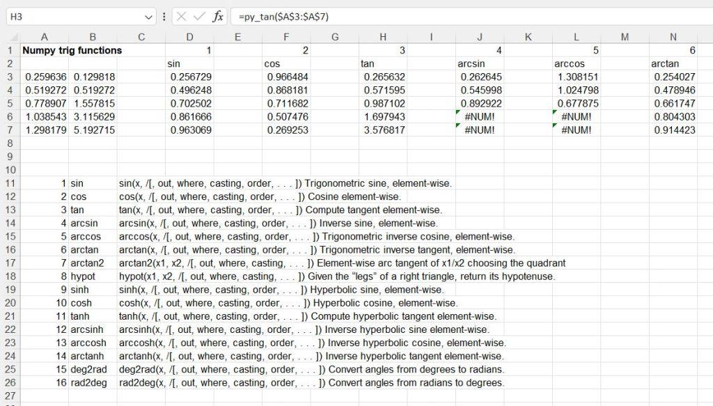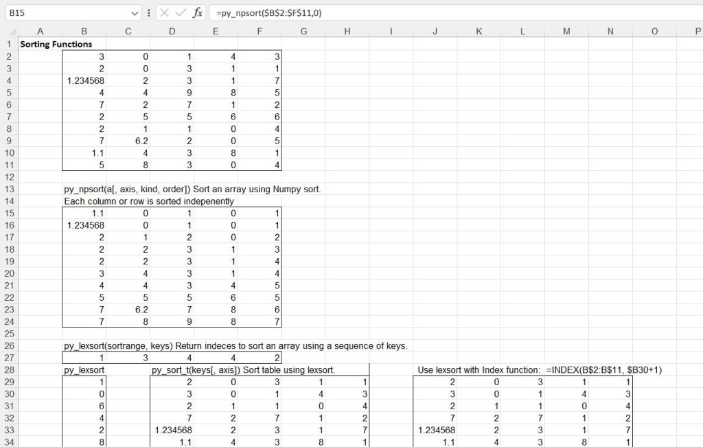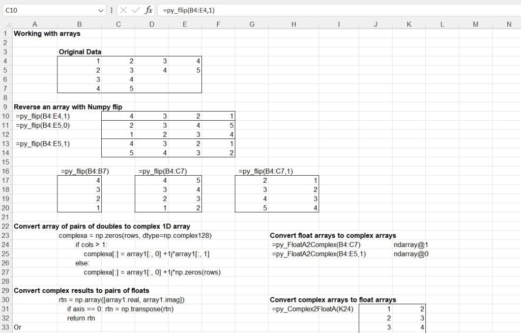The py_Numpy.xlsb spreadsheet has many examples calling Numpy functions, including: