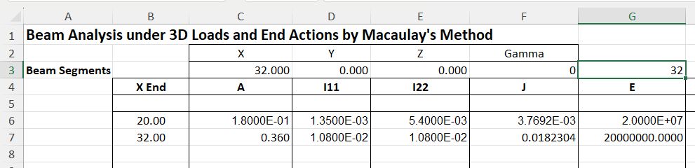 The function allows for the beam alignment to be defined in 3 dimensions, but for the purposes of comparison with Strand7 results it was aligned with the X axis: