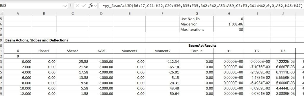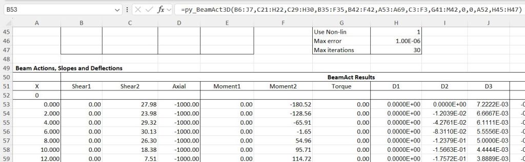 … or perhaps one more. Following the previous post I have modified the py_BeamAct3D function to fix some problems with the non-linear analysis.