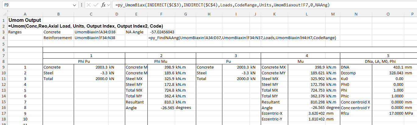 The focus of this post will be the new py_UmomBiax function that provides similar functionality to the equivalent VBA function, see Biaxial bending update 2.