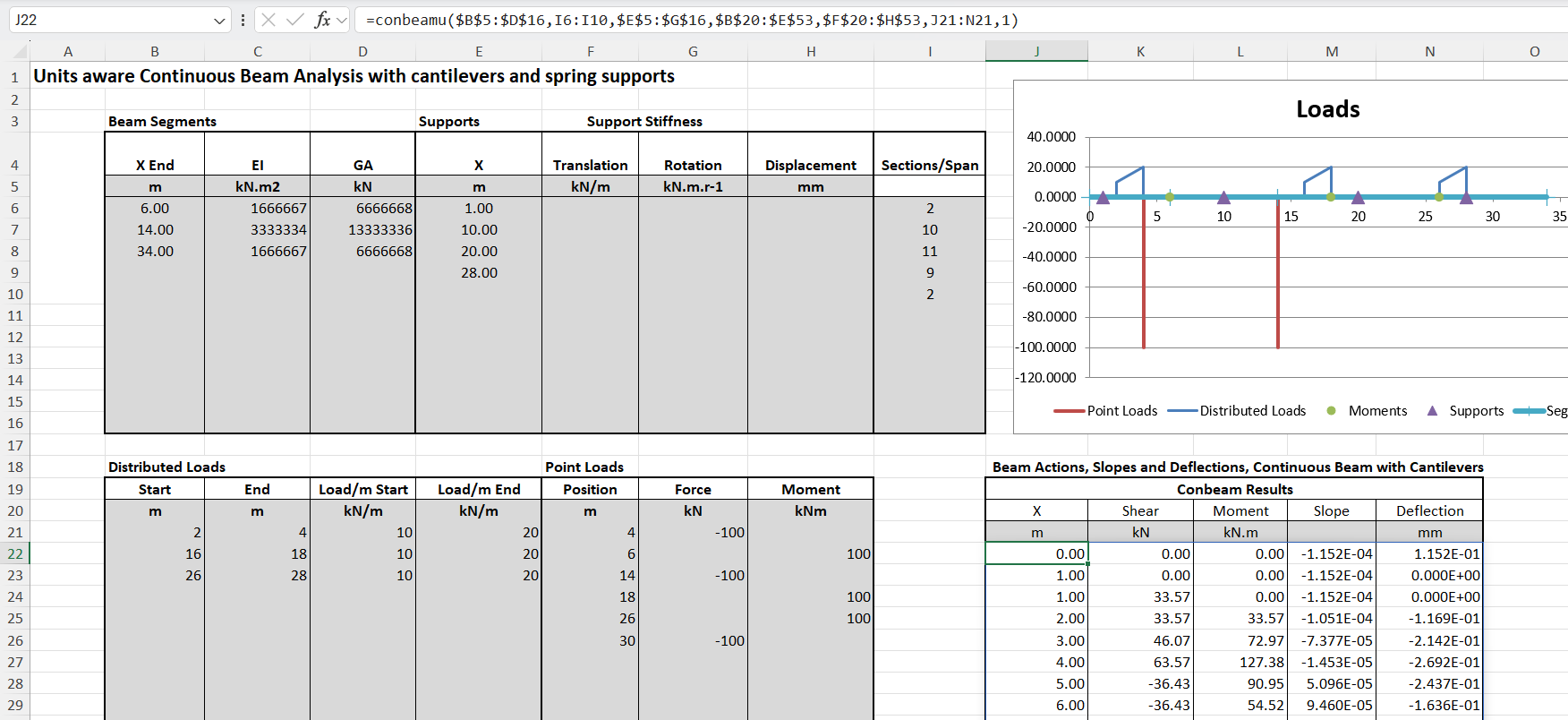 - ConBeamU.xlsb: The complete spreadsheet, including examples of all functions