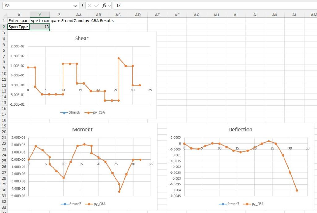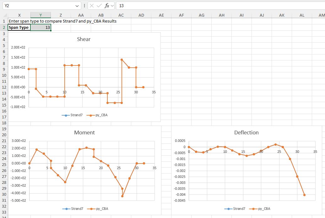 - py_CBA-Check26-1.xlsb: Check of py_CBA results against Strand7 results for multiple different span and support conditions