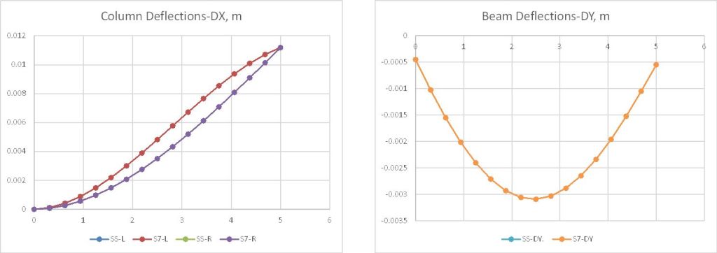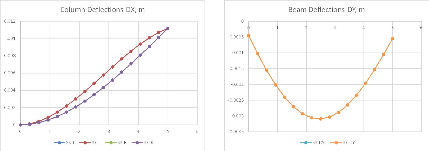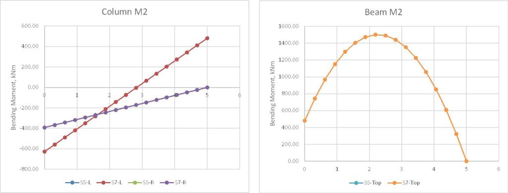 - Beam bending moment results allowing for non-linear geometric effects have been corrected for axial load effects.