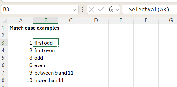 The Python match case statement was introduced in Python 3.10. It provides similar functionality to the VBA Select Case statement, but also has additional features. For detailed background with examples see: